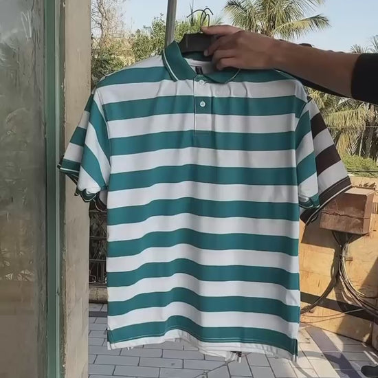 Old money button stripe printed polo